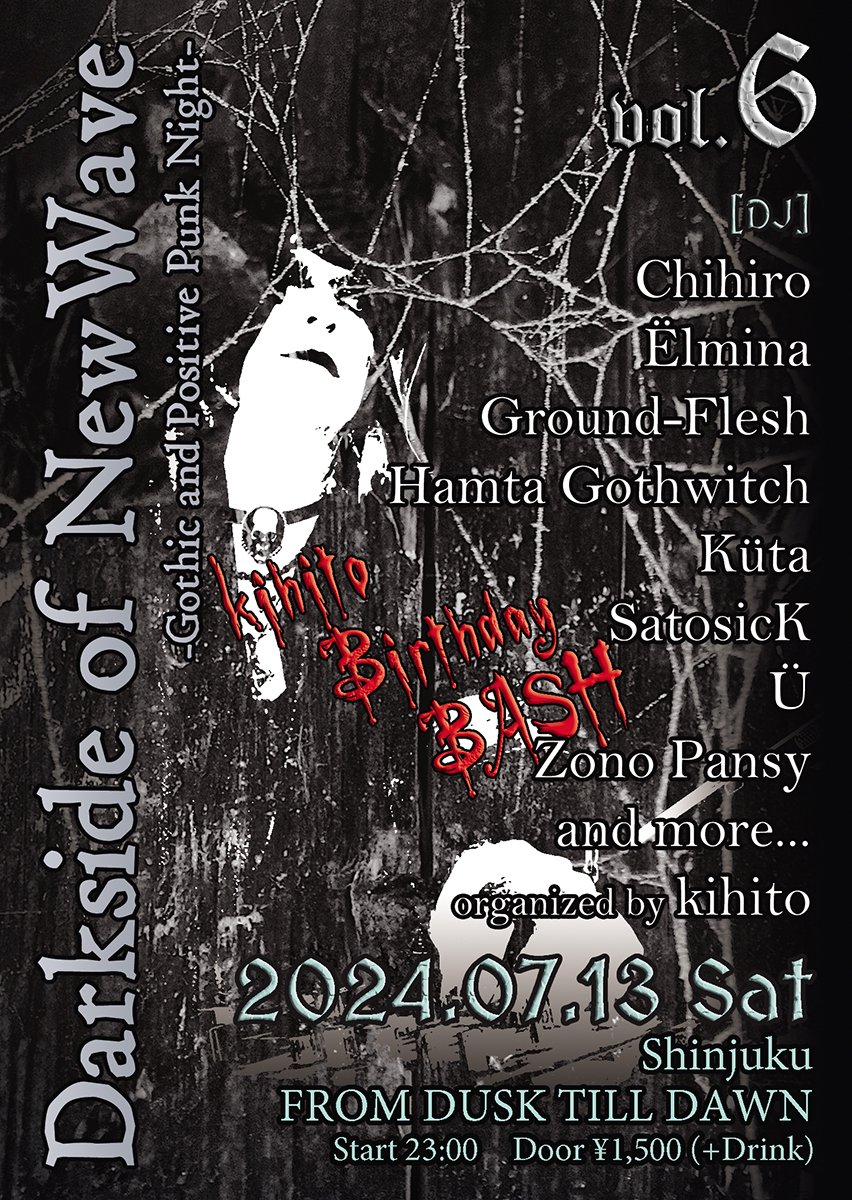 Darkside of NewWave vol.6- kihito Birthday BASH -2024.07.13(sat) at 新宿FROM DUSK TILL DAWNStart 23:00Door ¥1,500(+D)DJ : Chihiro / Ëlmina / Ground-Flesh / Hamta Gothwitch / Küta / SatosicK / Ü / Zono Pansy / kihito and more...