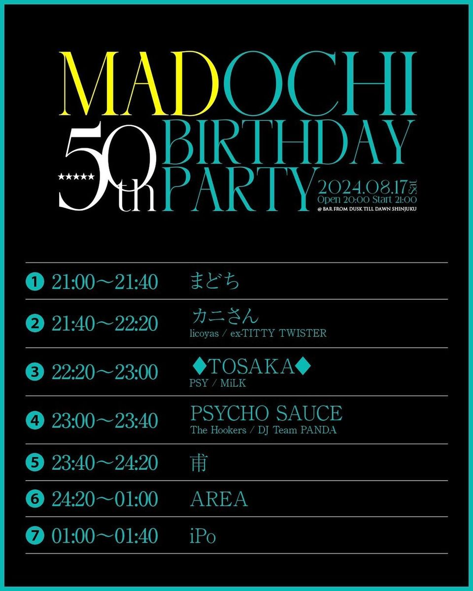 8月17日(土)まどち BIRTHDAY PARTY!まどちのお誕生日会やります♡素敵なDJ陣達がパーティーを盛り上げてくれます🎵まどちらしい最高なパーティーになる事でしょう!どなた様も皆でお祝いしましょー‼️㊗️#fromdusktilldawn #tokyo #shinjuku #kabukicho #bar#rockbar #musicbar #music #rock #metal #dj #party #alcohol #drunk